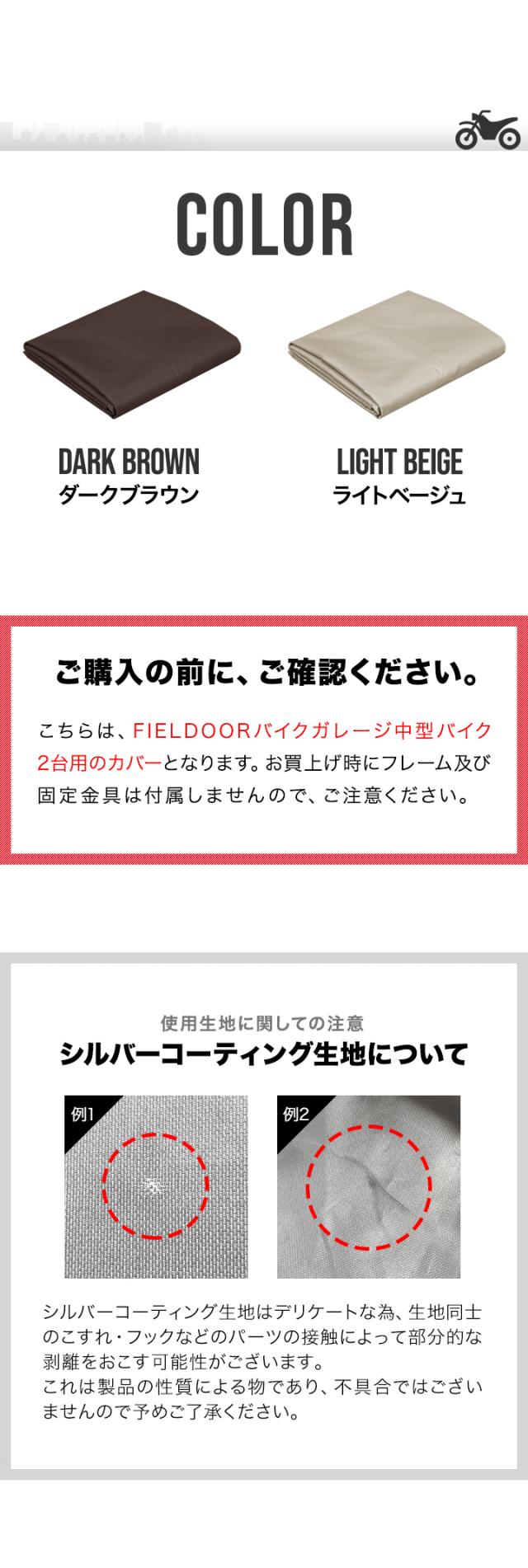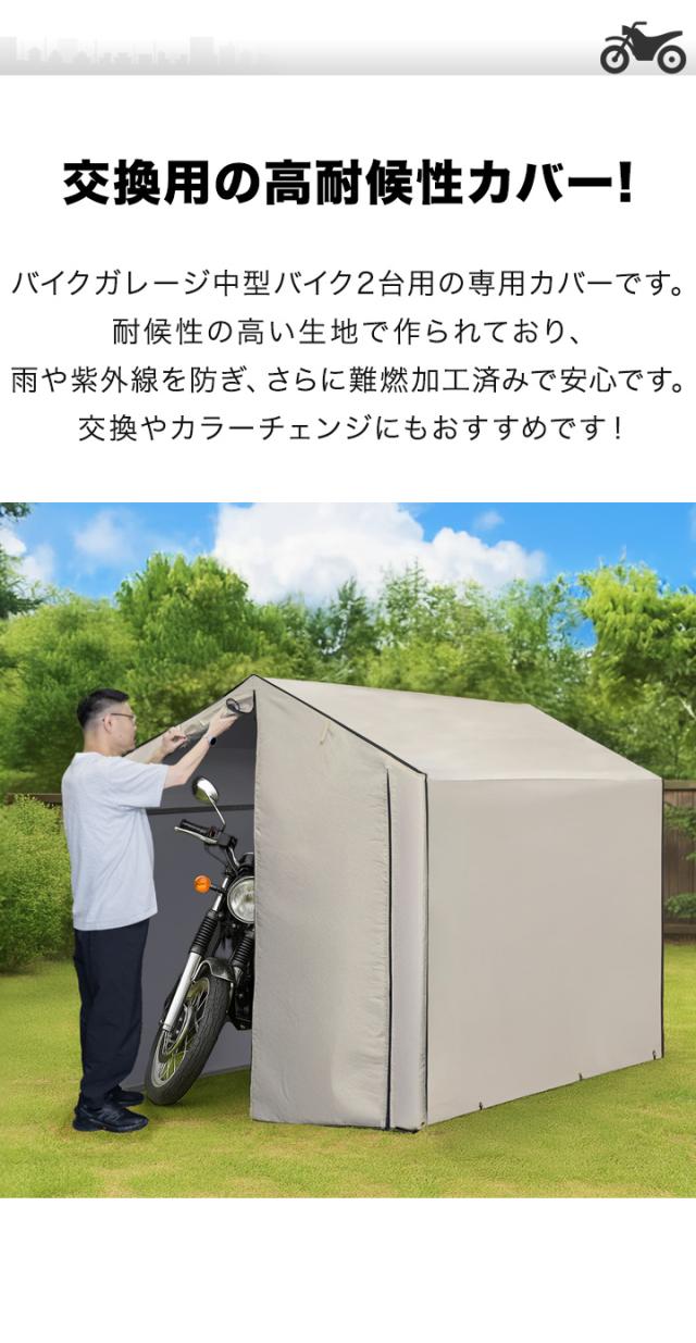 FIELDOOR バイクガレージ 交換用カバー 1台 2台用 幅170cm×奥行230cm 高耐候性/UVカット/難燃/420D生地 バイク置き場 車庫 ガレージテント バイク用ガレージ 自転車置場 交換カバー 替えカバー 替えシート 交換用 交換部品 1年保証 送料無料