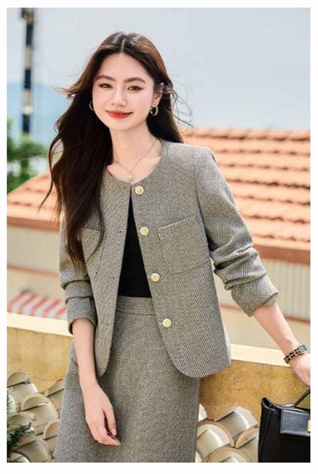 | ツイードライク生地が上品な印象を演出してくれる、ジャケットとスカートの2点セットスーツになります。 かつシンプルなデザインで落ち着いた印象を演出。 ツイードのような仕立てできちんと感もありながら、軽い着用感が魅力です。 ジャケットはスッキリとしたクルーネック すっきりしたストレートスカートは、ひざ下丈でクラシカルな雰囲気。 さらりとした肌触りの裏地で、オールシーズン活躍できます。 入学式や卒業式などのセレモニー、七五三やお宮参りなどのフォーマルシーンはもちろん、単品で通勤やオフィスシーンにも活躍します。 | |
