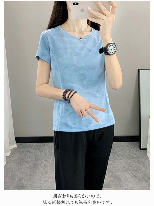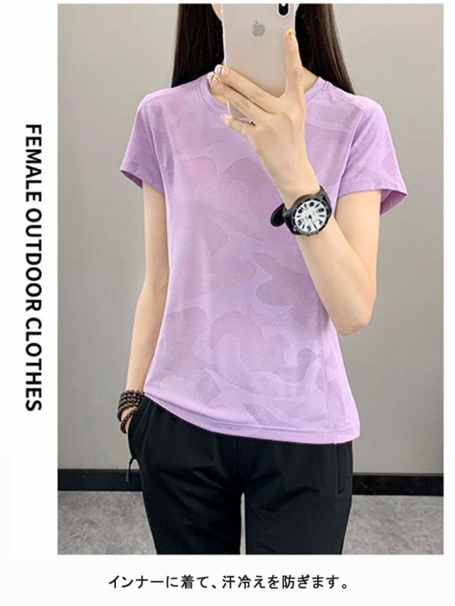 ドライメッシュTシャツ 【2枚セット】 接触冷感 夏用 レディース 通気性 スポーツTシャツ ストレッチ 半袖 吸汗 Tシャツ ランニング 速乾 ひんやり 高弾力 薄手 ドライ ランニングウェア メッシュTシャツ ヨガ テニス 【2枚セット】 登山 釣り スポーツウェア