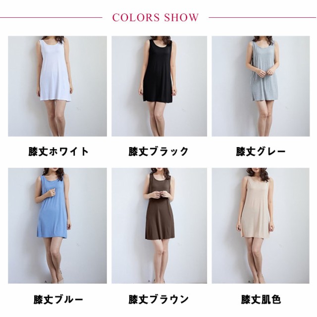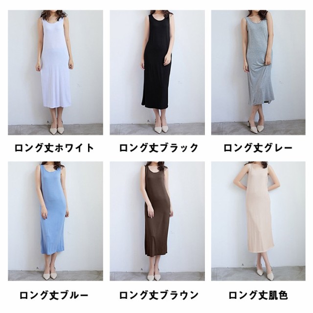 | 【大人気の3つの丈の長さから選べるインナータンクトップワンピース。】 シンプルなデザインにする事でかさばることなく、インナーの透け防止にぴったり 楽な着脱ができ、透けるなどを心配することなく、お洒落を楽しんでいただけます。 カラーでキレイ目にもカジュアルにも合わせられます! 一枚持っていると、着こなしの幅がぐっと広がってトレンドのワンピスタイルを存分に楽しめます。 | |