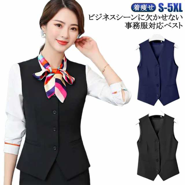 オフィス Vネック 事務服 事務服ベスト 制服 トップス レディース ベスト 単品 女性用 ノースリーブ ショート丈 スリム ジレ 春夏秋 ボタン おしゃれ 着痩せ 面接 上品 レディース 大きいサイズ 通勤