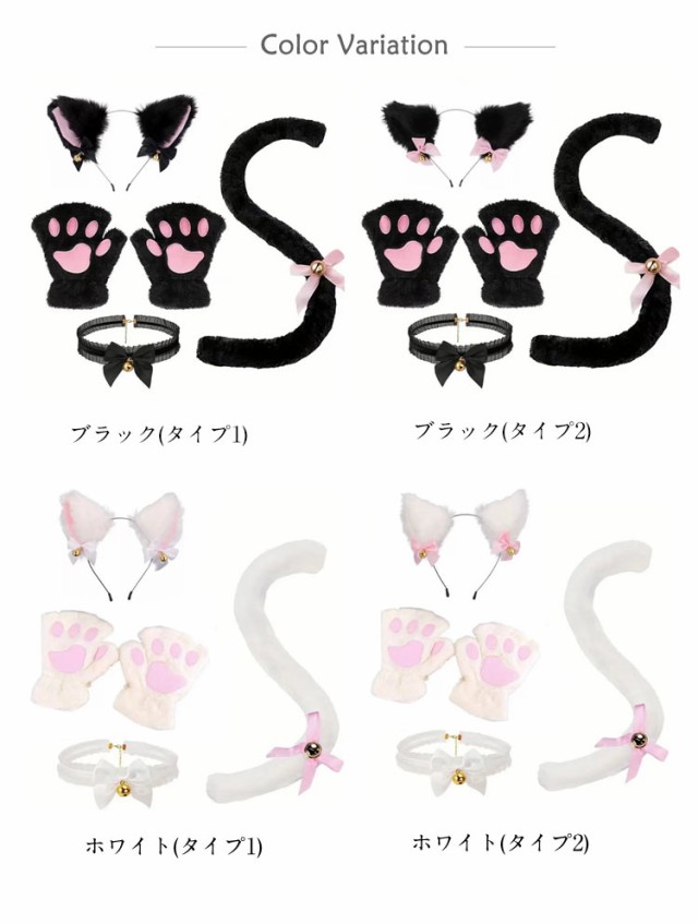 | 可愛い萌え萌えにゃんこに変身できる4点セット!猫耳カチューシャ+肉球手袋+尻尾+チョーカー。 猫の手袋は柔らかな素材で、肉球のパターンにデザインされ、とても可愛いです。半指の設計で通気性が良く、スマホも自由に遊びます。 猫耳カチューシャ、チョーカー、尻尾はリボンと金色の鈴がついて、鈴は鳴らすことができ、素敵な雰囲気を醸し出します。 人気のかわいい猫耳のコスプレセット。簡単に付けられるからコスプレ初心者に大人気です。ハロウィン、イベントのコスプレにぜひ! | |