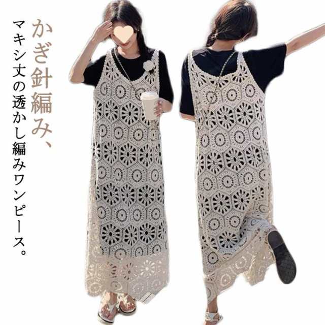 ワンピース かぎ針編み 透かし編み キャミソールワンピース おしゃれ ワンピース マキシ丈 カジュアル レイヤード 重ね着 春夏 ロングワンピース かわいい M レトロ S かぎ針編み L