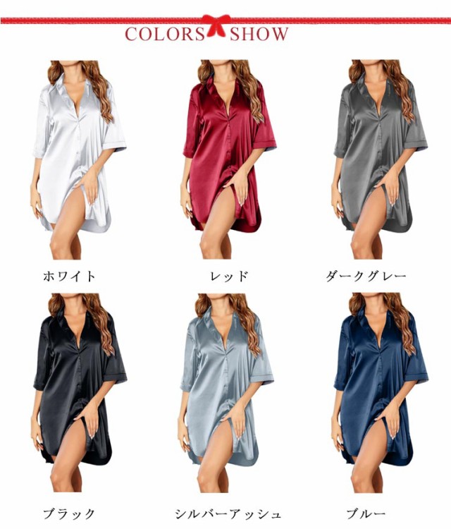 ルームウェア ネグリジェ ワンピース サテン パジャマ シャツ 部屋着 寝巻き レディース ワンピース Aライン サテン調 パジャマ 寝間着 半袖 ナイトウェア 母の日 薄手 ゆったり 春 夏 秋 前開き ギフト シャツ