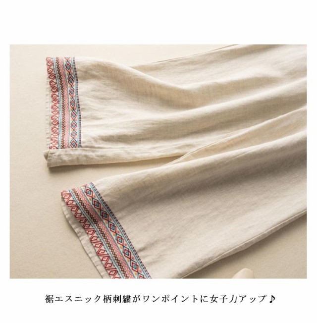 エスニック ペチパンツ ワンピースとレイヤード ワインパンツ ペチパンツ 重ね着 薄手 レディース ペチコート 刺繍 ウェストゴム リネンパンツ 春夏 涼しい 体型カバー ストレート リラックスパンツ 麻 綿麻パンツ