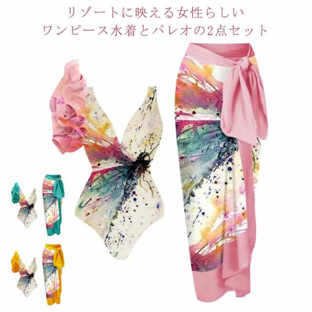 ビキニ タンキニ レディース ワンピース アシメ フリル ワンショルダー 2点セット 水着 水着 巻きスカート 20代 30代 オールインワン セクシー 肩出し 20代 ェミニン ガーリー オトナ女子 パレオ付き