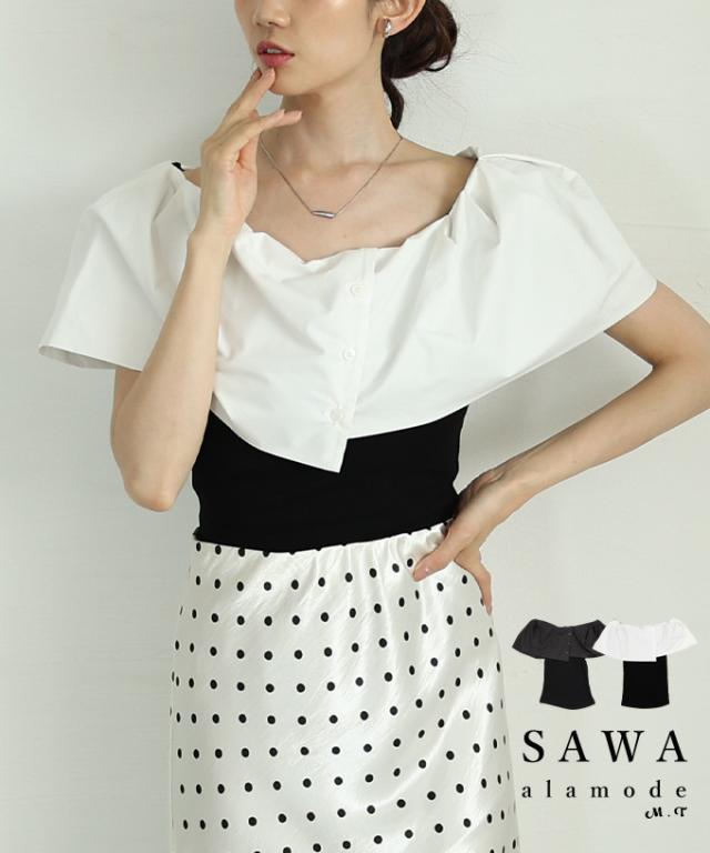 春新作 ランクアップする品の良さを纏うオフショルダー風異素材ケープトップス レディース ファッション トップス ケープ 異素材 リブ オフショルダー風 夏 30代 40代 50代 60代 サワアラモード sawaalamode otona 大人 cawaii 可愛い 洋服 かわいい服 aljun-997s