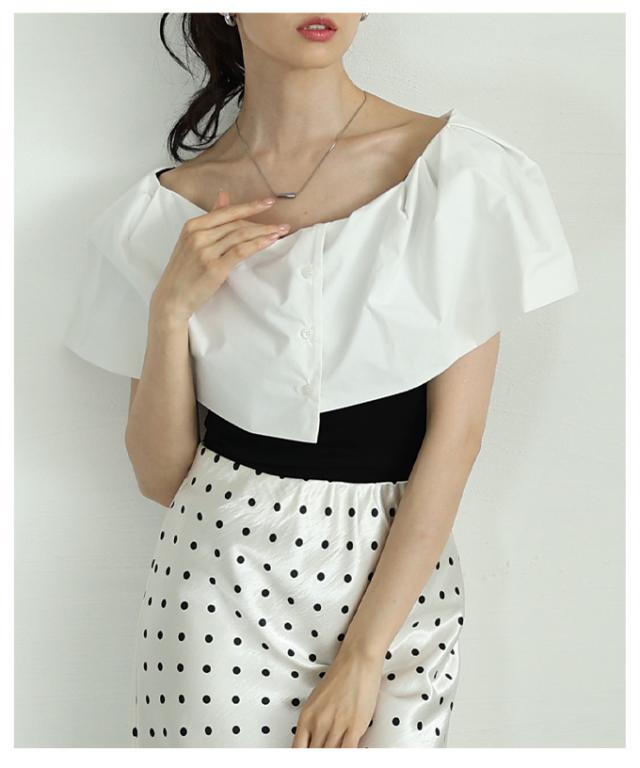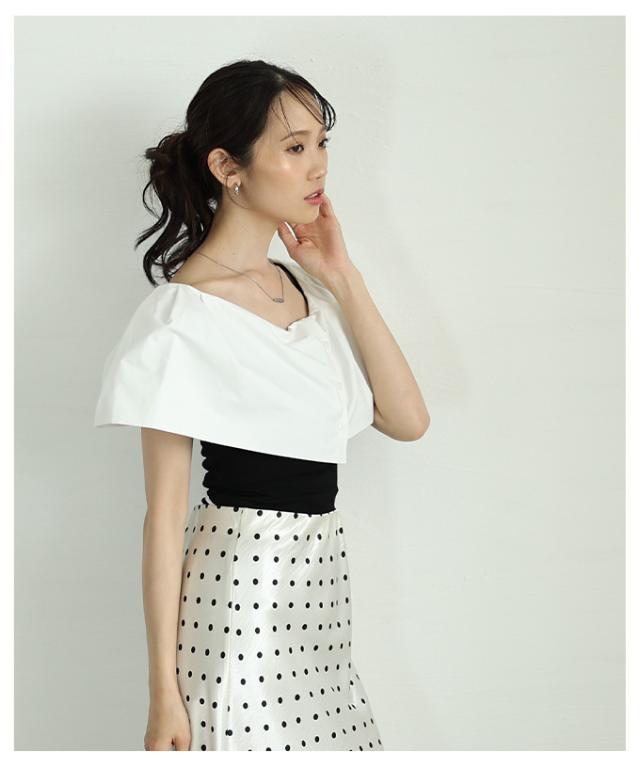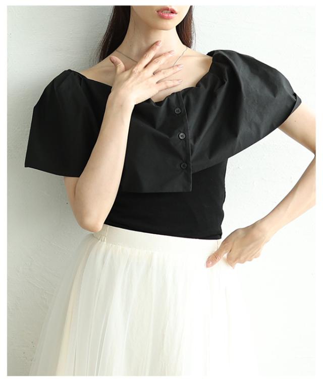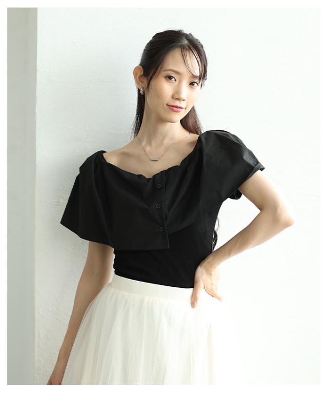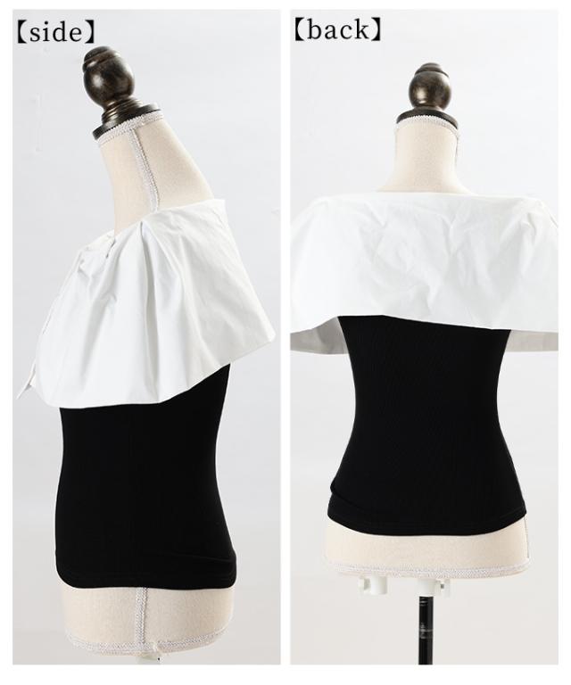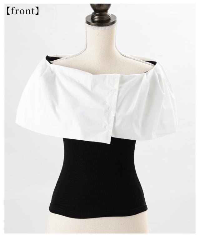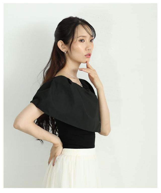 商品名: 品の良さを纏うオフショルダー風異素材ケープトップス