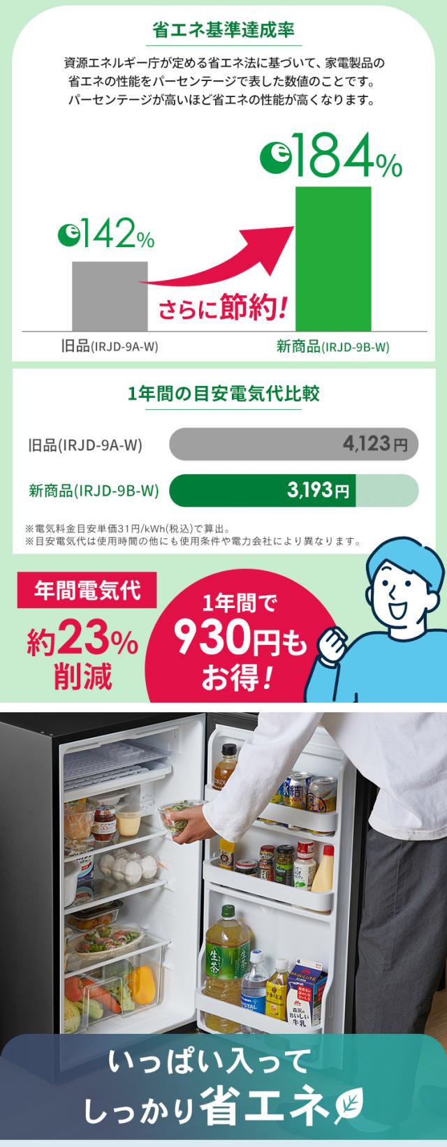 冷蔵庫 一人暮らし 小型 家庭用 93L 1ドア セカンド冷蔵庫 省エネ 電気代 節電 右開き 製氷可能 製氷皿付 飲み物 温度調整 7段階 クリアケース コンパクト サブ ミニ 単身 リビング 寝室 オフィス 会社 ひとり暮らし IRJD-9B アイリスオーヤマ * 送料無料