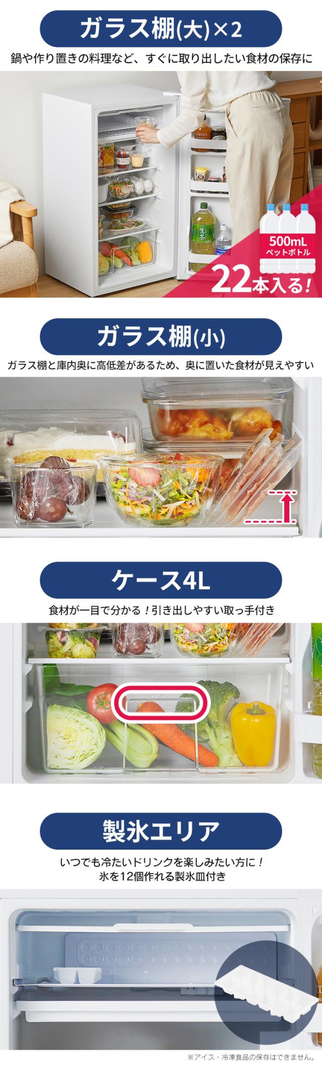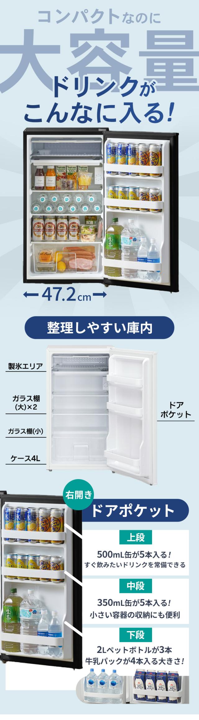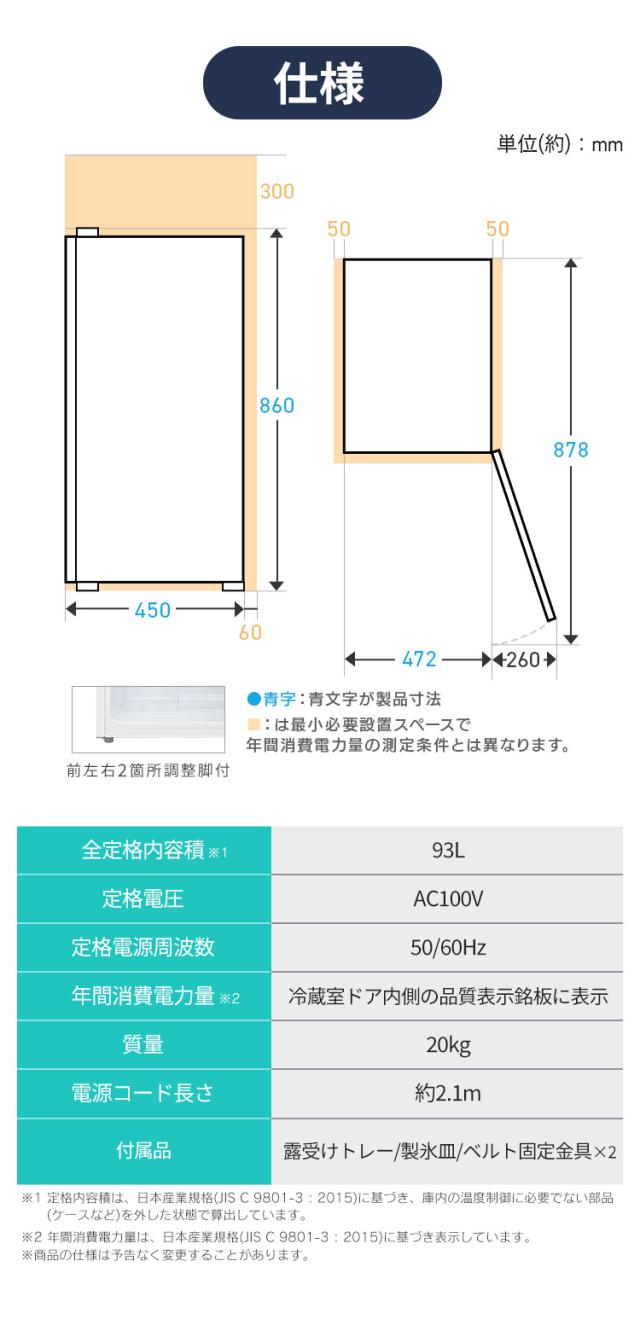 [検索用:冷蔵庫 小型 ひとり暮らし 1ドア 93L セカンド冷蔵庫 省エネ 電気代 家庭用 右開き 製氷可能 飲み物 クリアケース コンパクト 単身 リビング 寝室 オフィス 会社 一人暮らし サブ ミニ 4967576797283 4967576797290]