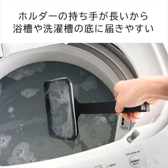 マグネットで浮かせて収納できる浴槽&洗濯槽ゴミ取りネットホルダー!市販の水切りネットを取り付け交換できるので衛生的。持ち手が長いので、浴槽掃除や洗濯槽の底も掃除しやすく便利です。