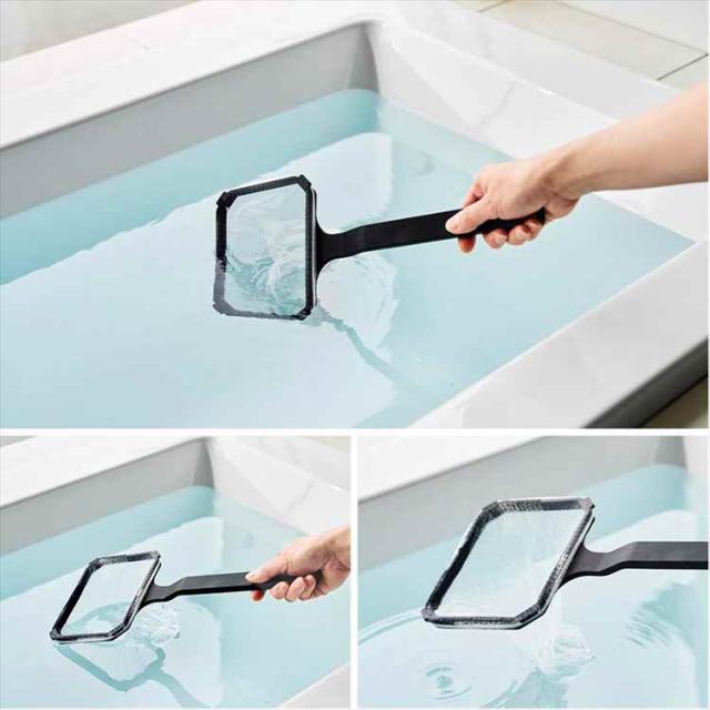 浴槽や洗濯槽に浮いたゴミをさっとすくえるゴミ取りネットホルダー。専用の水切りネットではなく、市販の水切りネットが使えるのでお手軽で経済的です。