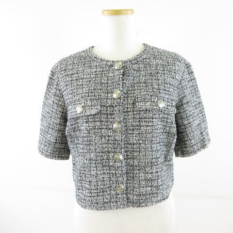 【中古】エイチ&エム H&M ツイードジャケット 半袖 ノーカラー 黒 白 S *T724 レディース