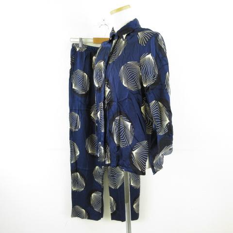 【中古】ザラ ZARA セットアップ シャツ ブラウス 七分袖 ロングパンツ 総柄 紺 XS *T756 レディース