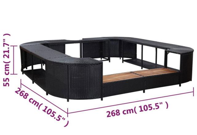 vidaXL 正方形スパサラウンド (浴槽周り家具) ブラック 268×268×55cm ポリラタン製 プール スパ プール スパ用アクセサリー(代引不可)【送料無料】