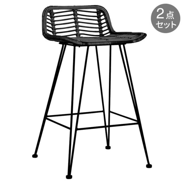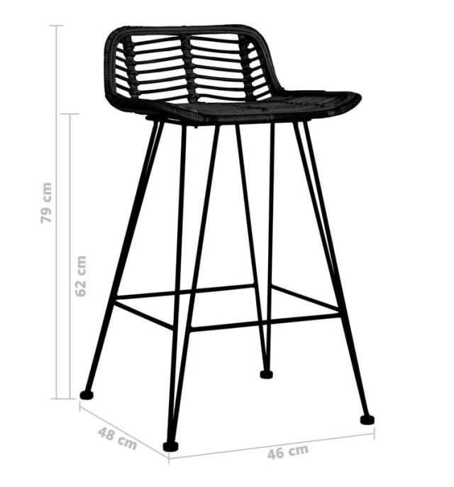 vidaXL バースツール 2点 籐製 ブラック 家具 チェア テーブル バースツール(代引不可)【送料無料】