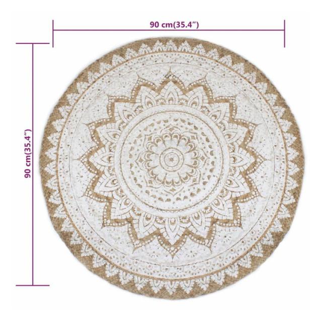 vidaXL 手作りラグ ジュート素材 網状 丸型 柄付き 90cm デコレーション ラグ(代引不可)【送料無料】