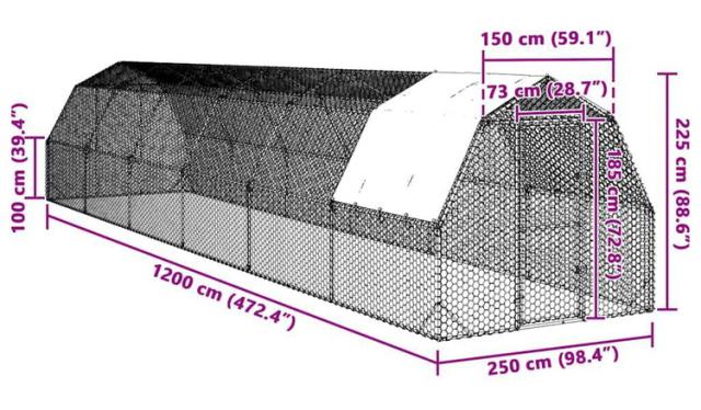 vidaXL 屋根付きチキンラン 2.5×12×2.25m 亜鉛メッキ鋼 動物 ペット用品 ペット用品 小動物用品 小動物 飼育 ケージ(代引不可)【送料無料】