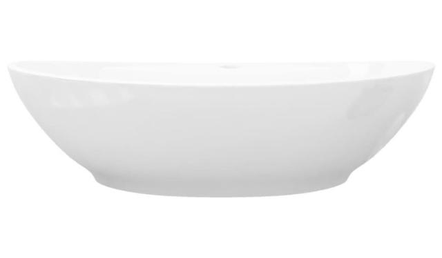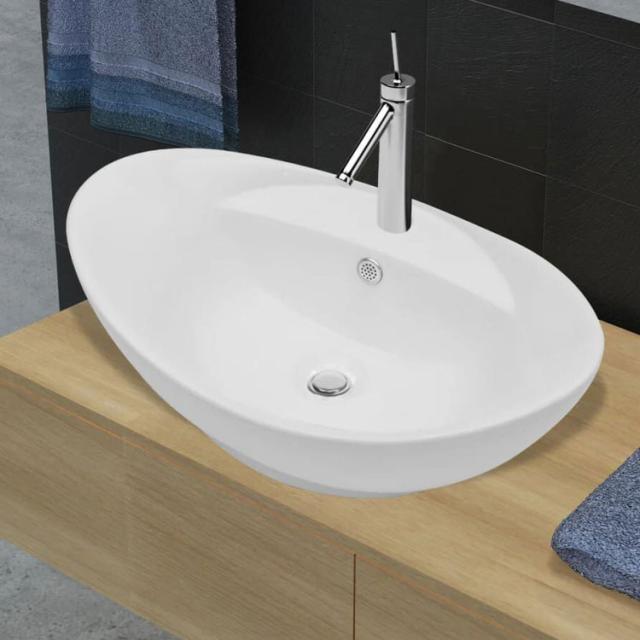 vidaXL ラグジュアリー セラミック製 洗面ボウル 楕円形 オーバーフロー 蛇口穴付き ハードウェア 配管 配管器具 シンク 洗面器(代引不可)【送料無料】
