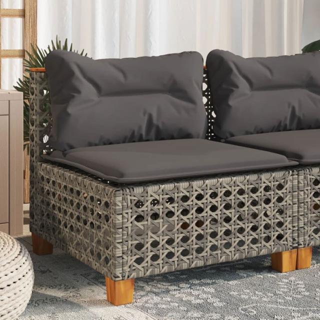 vidaXL ガーデンソファ アームレス クッション付き グレー ポリラタン 家具 アウトドア家具 屋外椅子 屋外ソファ(代引不可)【送料無料】