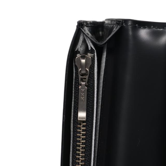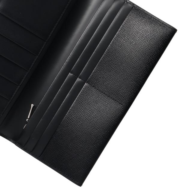 ほどよい艶感が美しい型押しレザーを使用。上品に輝くメタルブローチの側面には、ブランドを象徴する3ドットのアイコンを配置し、細部までこだわったデザイン。カード段とポケットを備え、カードやレシートを整理しやすい設計です。札入れは紙幣をすっきり収納可能で、小銭入れも備えており、使いやすさを追求した仕様です。