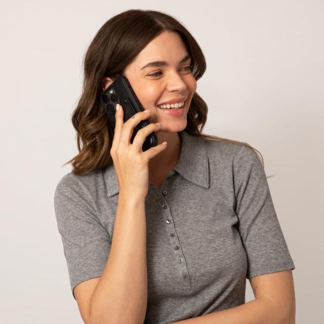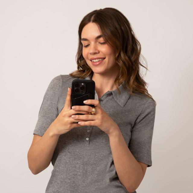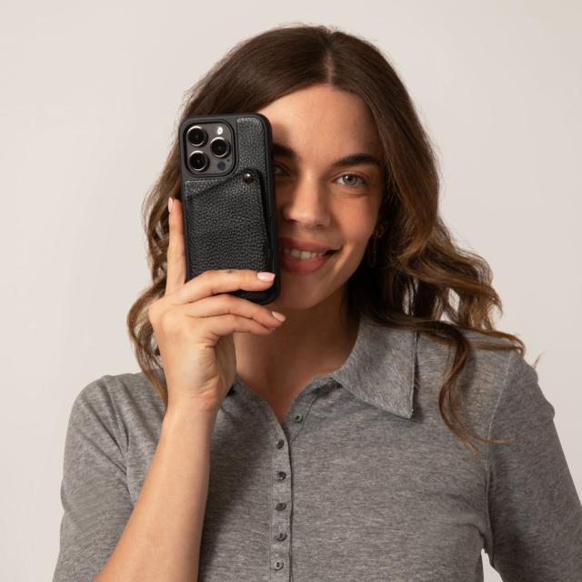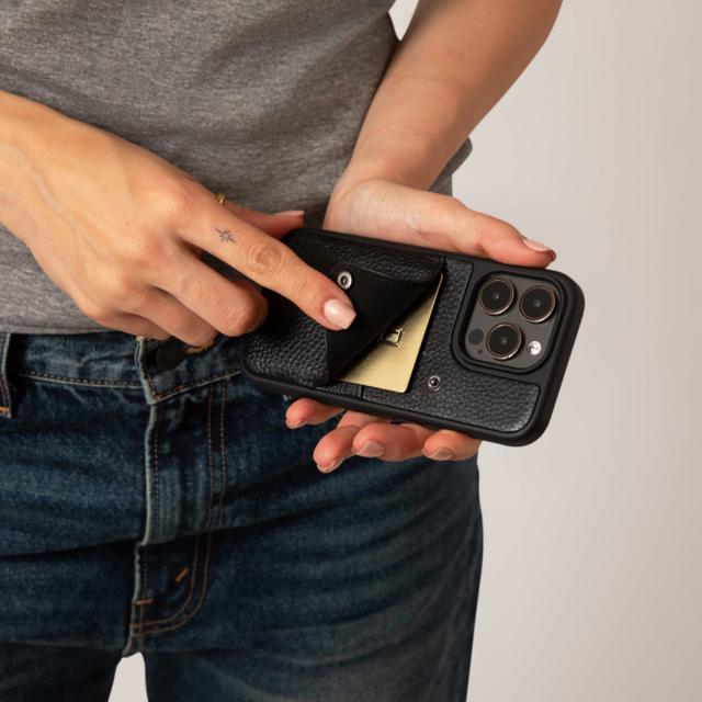 ストラップ無しのシンプルなデザイン。 さりげない型押しロゴがポイントに。 無地でシンプルなブラックレザーが洗練された印象を演出。 男性はもちろん女性にも使用いただけるユニセックスデザインです。
