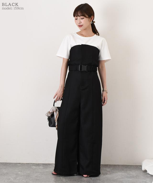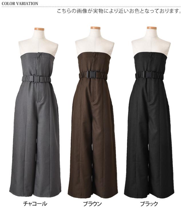 新作 サロペット レディース 秋 大きいサイズ きれいめ オールインワン チューブトップ ベアトップ ワイド ツイル 体型カバー ゆったり 高身長