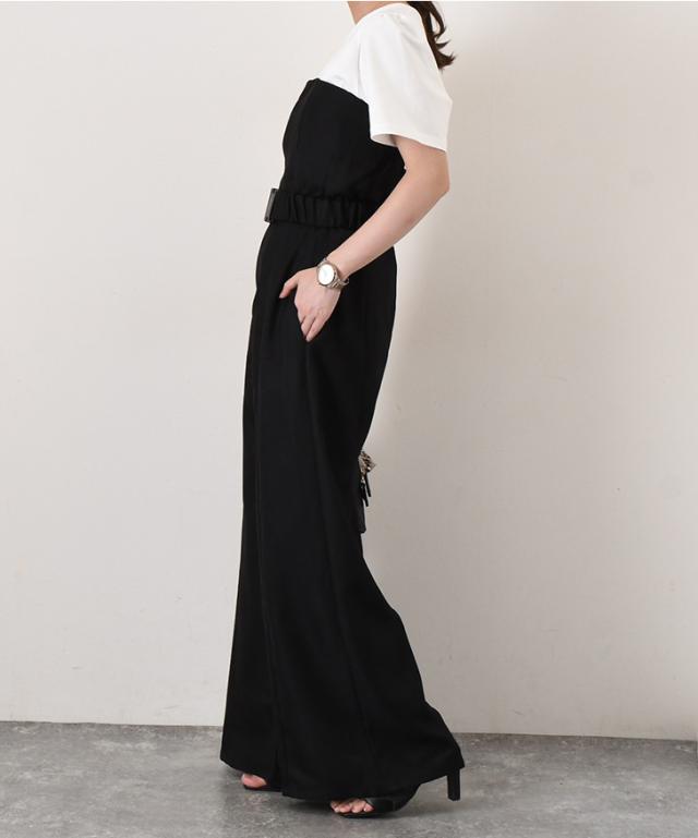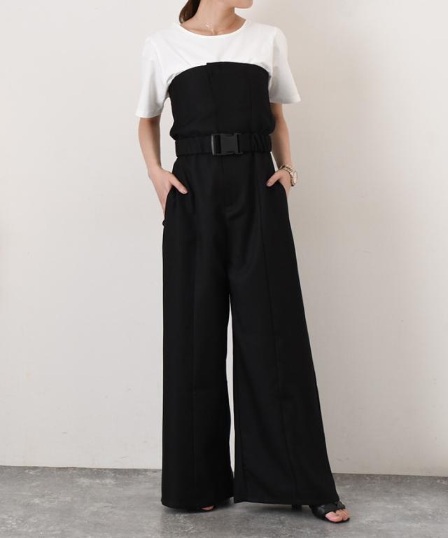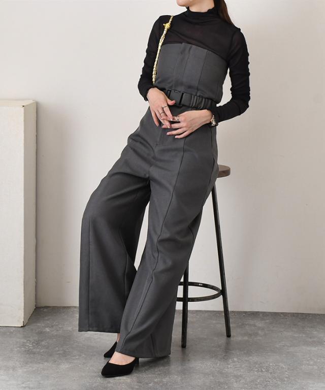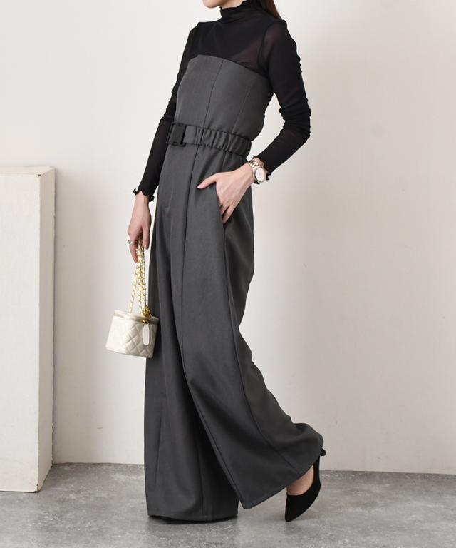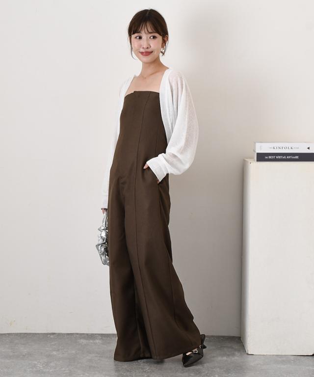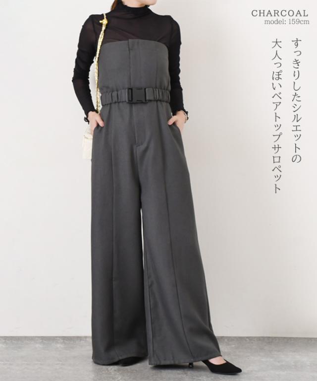 すっきりしたシルエットの大人っぽいベアトップサロペット