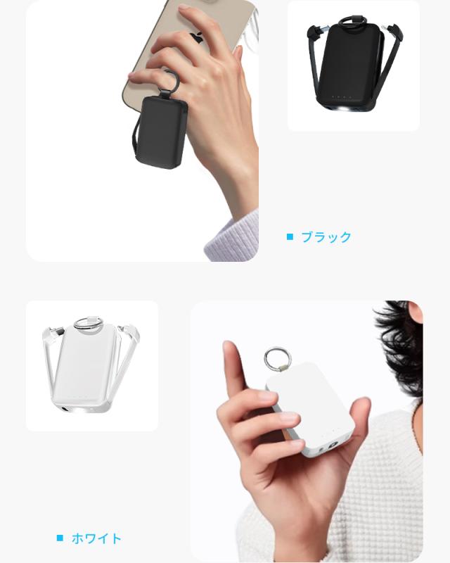 一般的なモバイルバッテリーと比較して、体積は約70%削減されながら、機能性は一切妥協していません。更に、取り外し可能なカラビナ付き、キーホルダー感覚でリュークにつけて、持ち運べます。