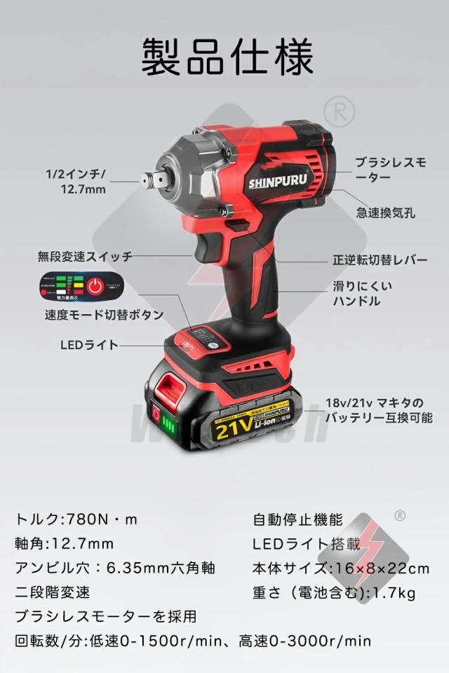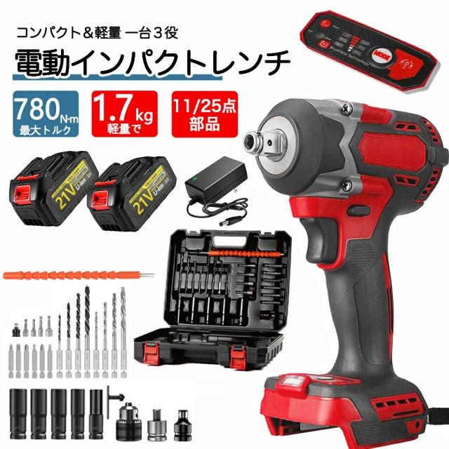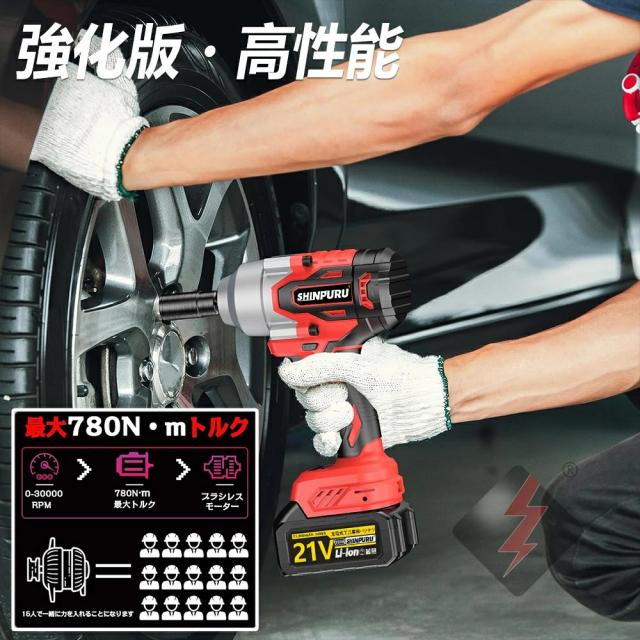 インパクトレンチ タイヤ交換 インパクトドライバー ドライバー 電動ドライバー 電動インパクトレンチ 最大トルク780N・m 充電式インパクトレンチ ブラシレスモーター 1/2‘’ 一台3役 自動停止 無段変速 正逆転 PSE認証取得