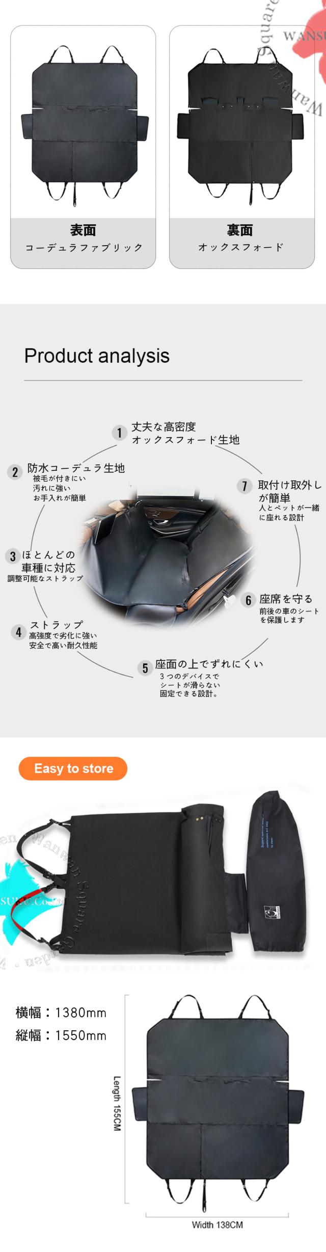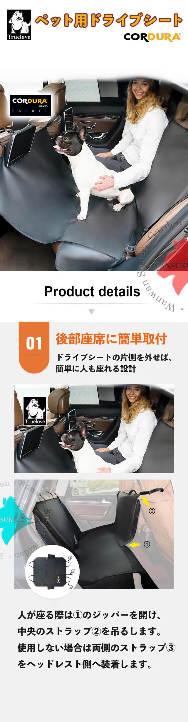 ペット用 ドライブシート カバー 丈夫で防水 コーデュラ Truelove ブランド 幅広1380mm シートベルトホール 高品質 上質 ペット ドライブシートカバー TLP1981