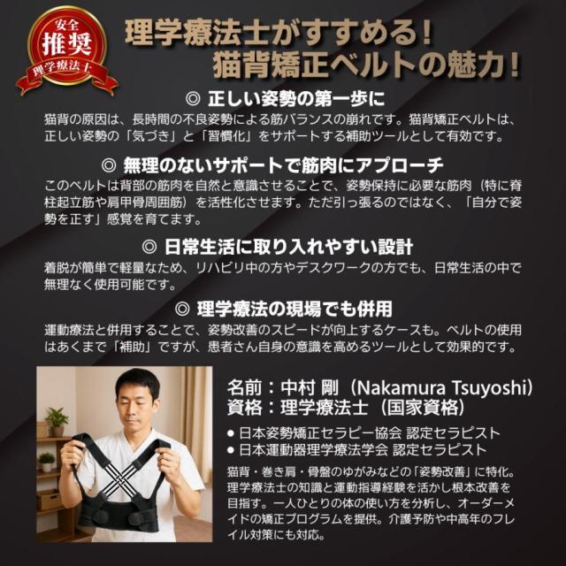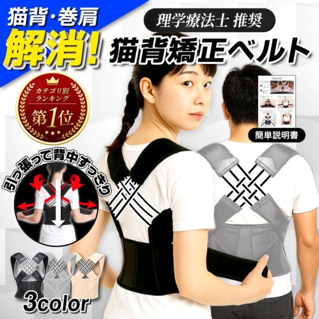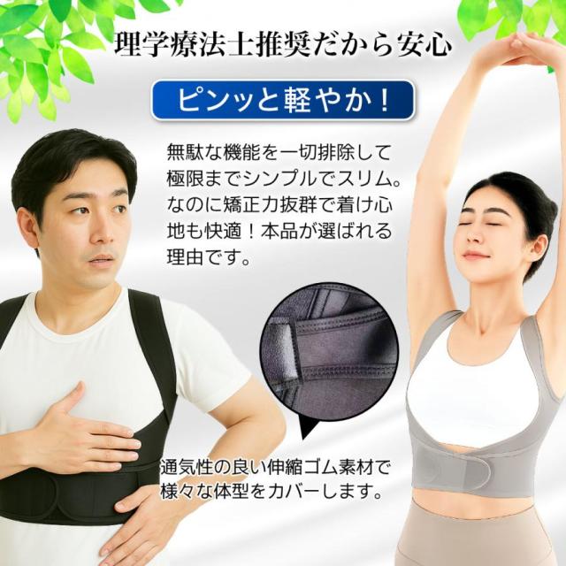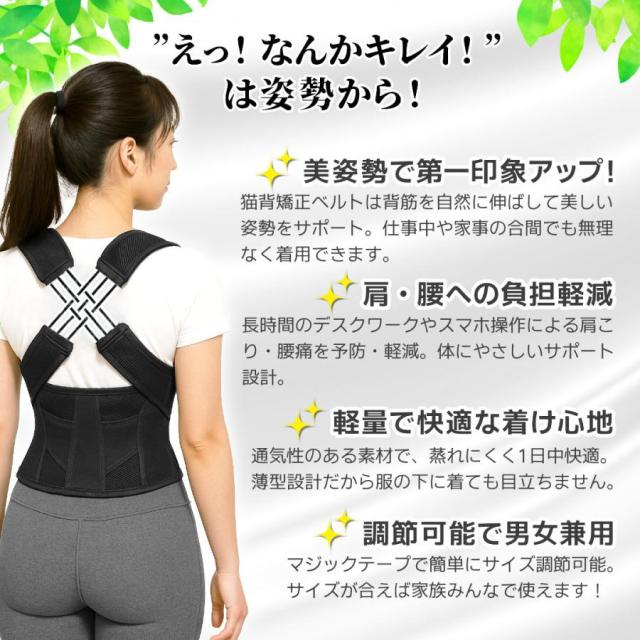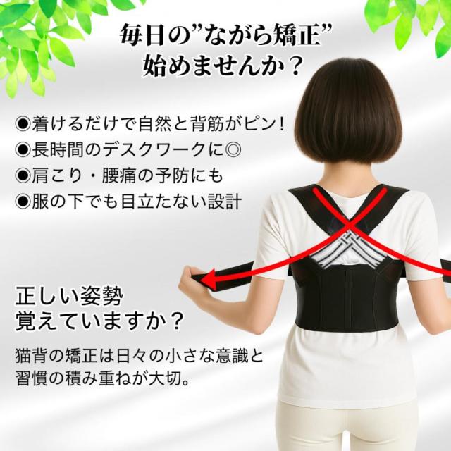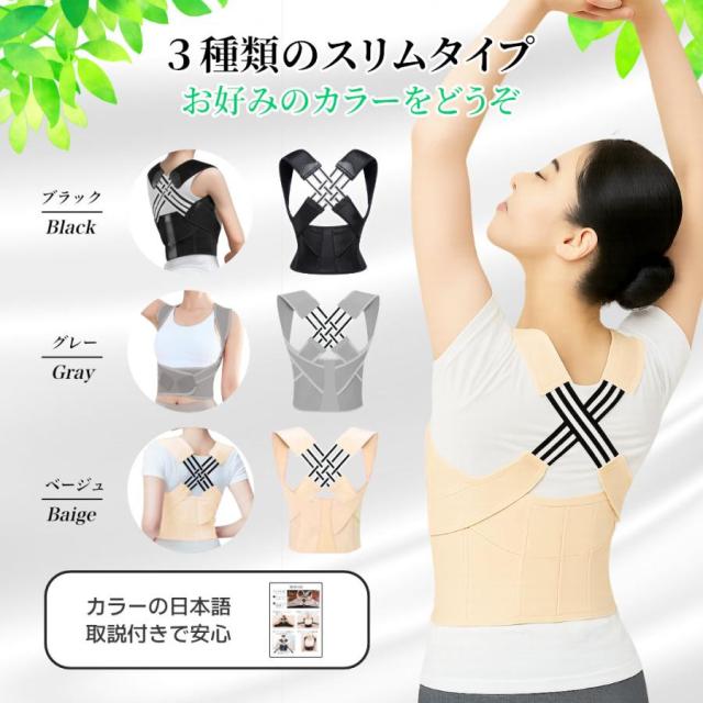 薄型で軽量の猫背矯正ベルト!猫背姿勢、肩こりでお悩みの方、本品にてじっくりと