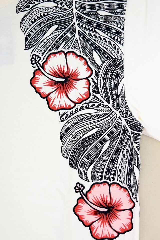 南国ハワイの伝統的な正装アロハシャツにテーマを見いだし、図柄をアレンジし落とし込んだ「ANTI」から、半袖Tシャツ「フローラルトライバル」(ATT-166)のご紹介です。