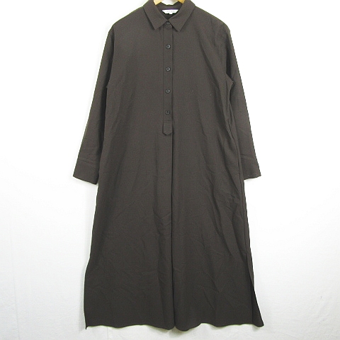 【中古】プラステ PLST シャツ ワンピース ロング丈 長袖 Aライン ストレッチ レーヨン 毛 S ダークブラウン