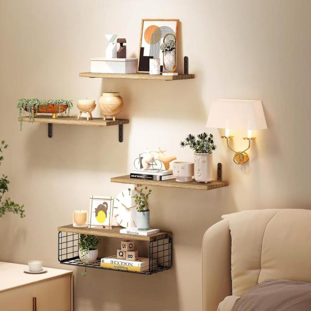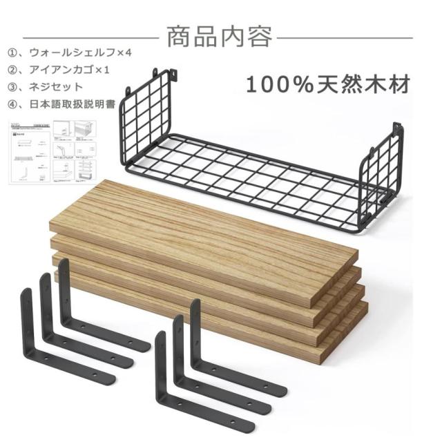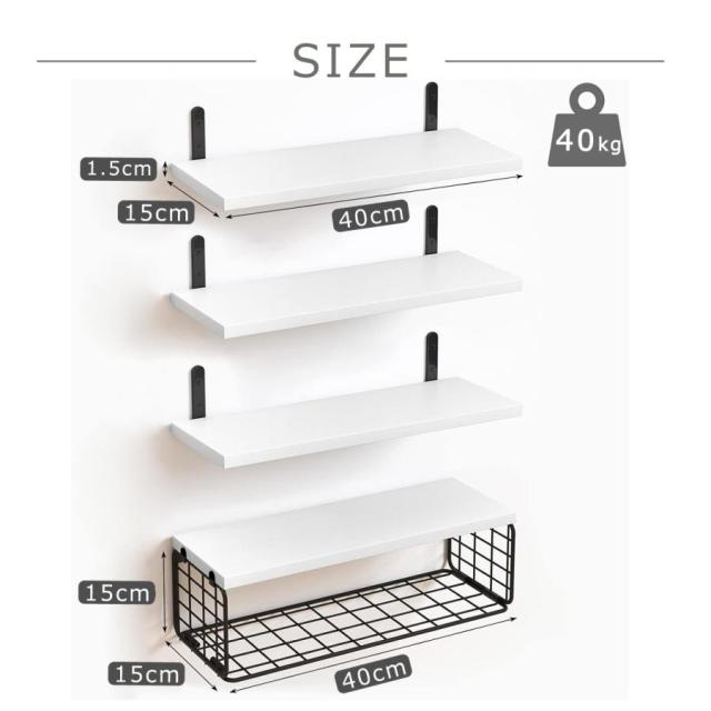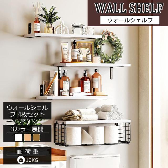 ウォールシェルフ 4枚セット 40cm 木製 取り付け 棚 石膏ボード おしゃれ 壁掛けシェルフ 飾り棚 ウォールラック 壁面収納 飾り棚