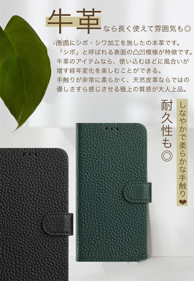 ● シボ加工を施した牛革とTPU素材の二重保護でスマホもしっかり全面保護。