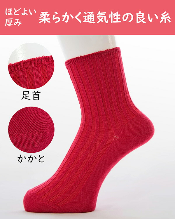 | ソックス | ※シンプルなデザインの表糸綿100%でコーマ綿仕様なので足にやさしい ゆったり編みクルー丈ソックス/赤くつ下1足♪ ※程よい厚さ生地で、履き心地・肌触り◎! |