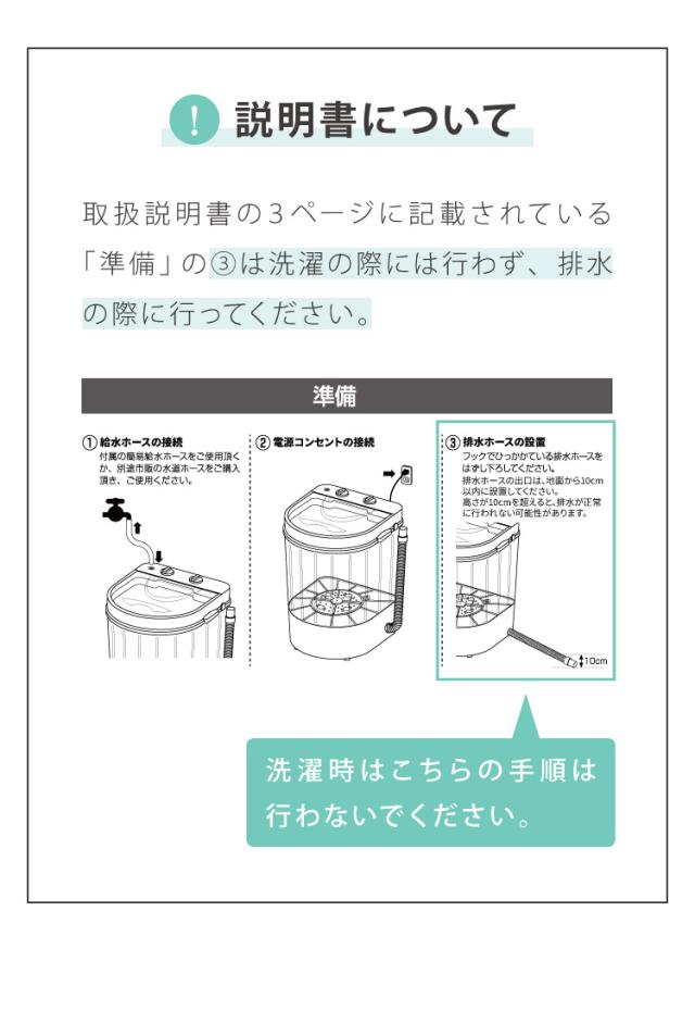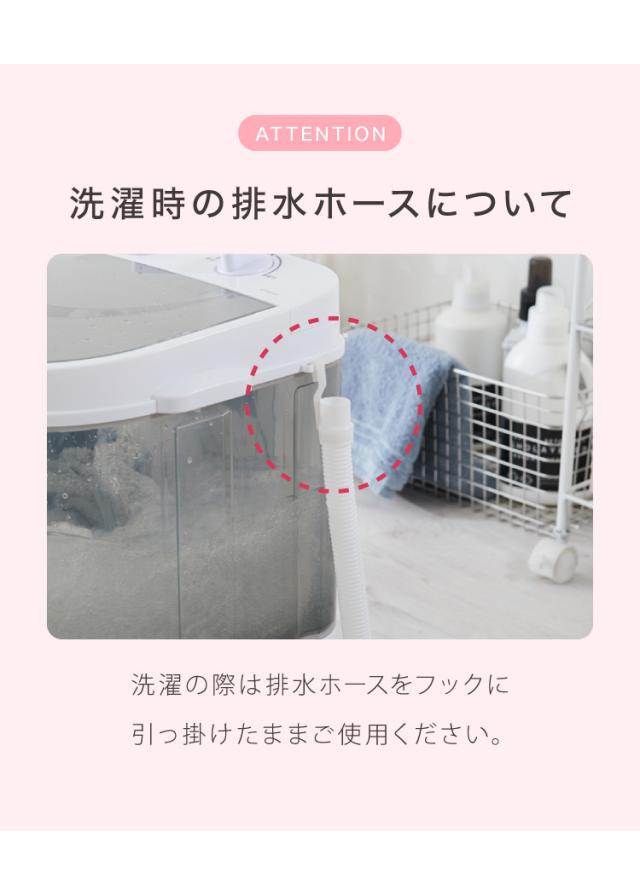 ※本製品の水切りは簡易的な水分除去(脱水補助)です。一般的な全自動洗濯機の高速脱水とは性能が異なります。