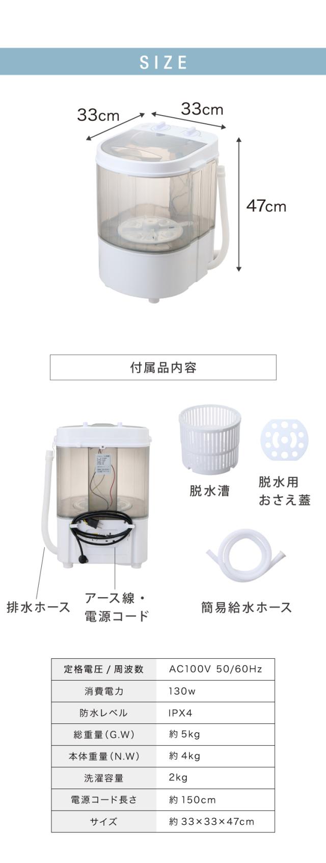 ページ修正点:脱水漕サイズとバケツ部分サイズを追記しました。