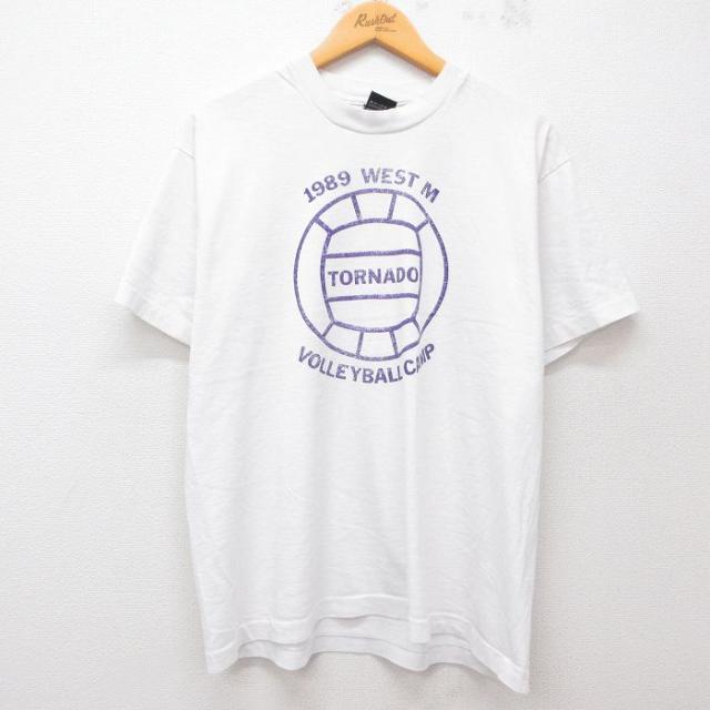 古着 スクリーンスターズ 半袖 ビンテージ Tシャツ メンズ 80年代 80s バレーボール TORNADO クルーネック 白 ホワイト Lサイ 中古 古着
