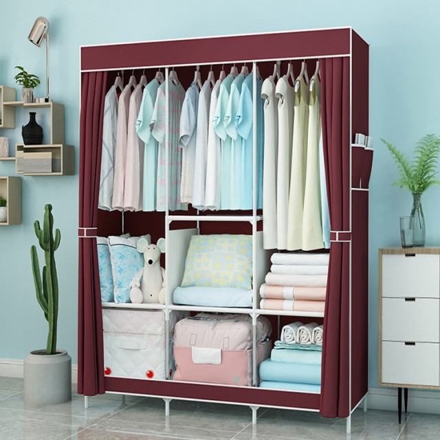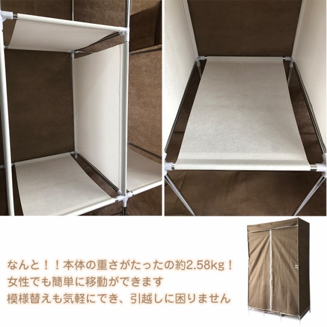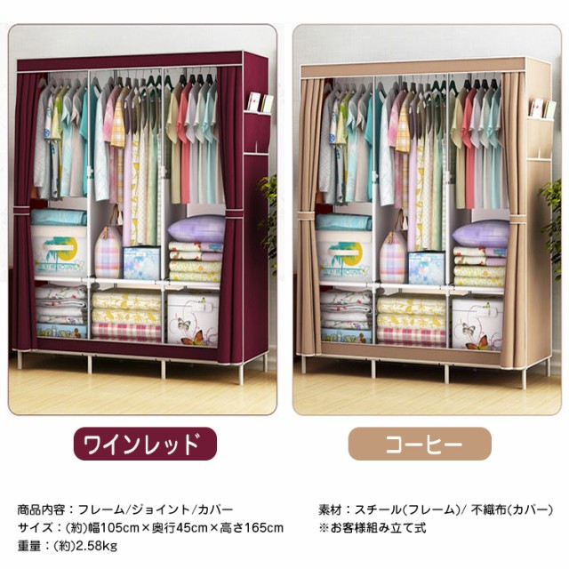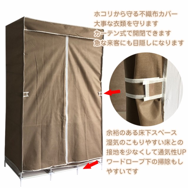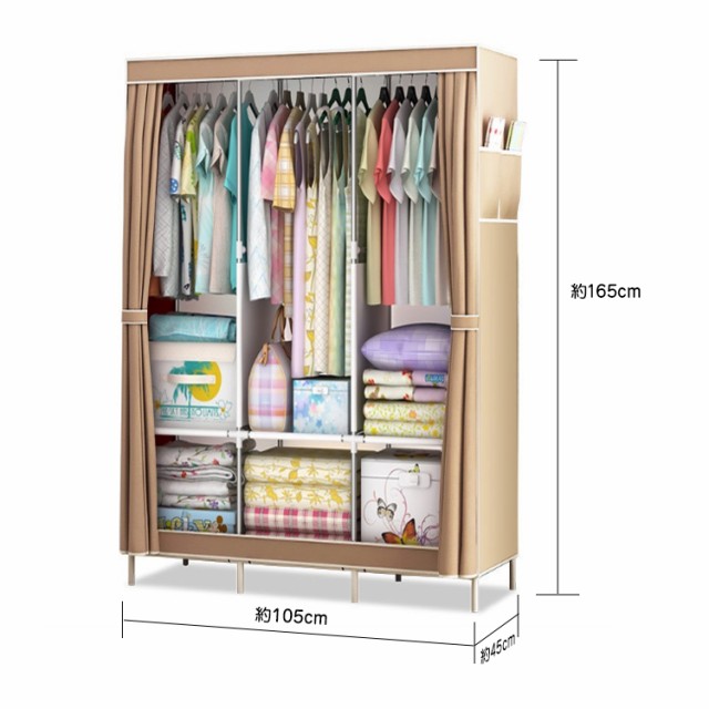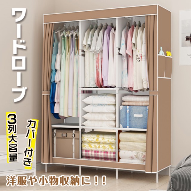 【在庫処分】新生活 ワードローブ おしゃれ クローゼット 3列 大容量 収納 カバー付き ラック ハンガー 衣類収納 軽量 カーテン 組み立て式 ny238