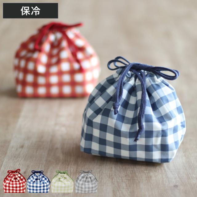 お子さまから大人まで使えるチェック柄が人気のシンプルなランチ巾着です。内側は保冷をサポートするシルバーコーディングが施されているので、保冷剤と一緒に使えば、夏場のお弁当も安心して持ち運べます。