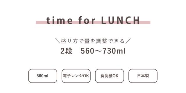 弁当箱 560ml ドーム 2段 time for LUNCH ランチボックス ( お弁当箱 食洗機対応 レンジ対応 二段 ドーム蓋 ドーム型 女子 日本製 食洗機OK レンジOK お弁当 弁当 4点ロック 仕切り付き 女性 )