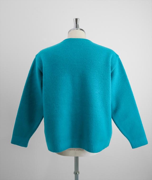 7ゲージの編地をフェルト化させてから起毛加工を施し、温かみのある表情に。
