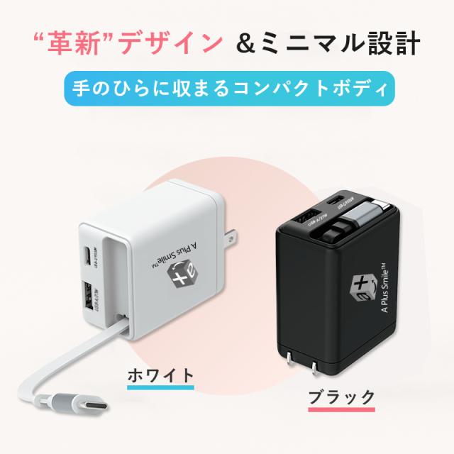 充電器 PD30W ケーブル内蔵 PD30W 自動巻き取り 伸縮ケーブル iPhone16対応 USB Type-C 折りたたみ 持ち運び便利 3台同時充電 小型 軽量 PSE認証