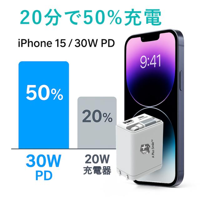 【最大30Wハイパワー — 超高速PD充電で時間を短縮】
