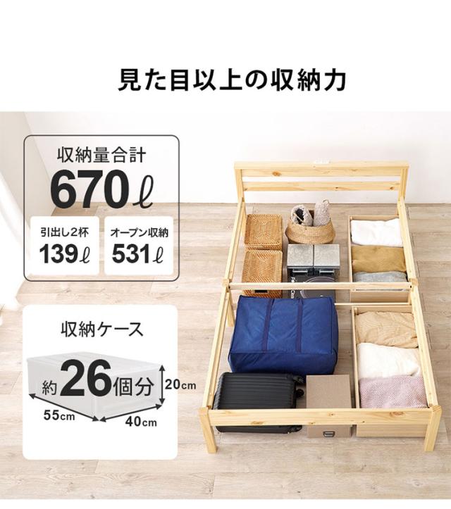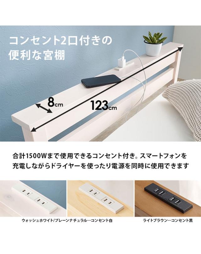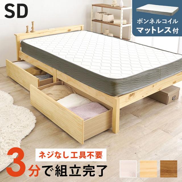 工具不要・簡単組立 引き出し・棚コンセント付き ベッド セミダブル ボンネルコイルマットレス付き 2点セット 耐荷重200kg 頑丈 ベッド ベッドフレーム すのこベッド 木製 北欧 おしゃれ(代引不可)【送料無料】
