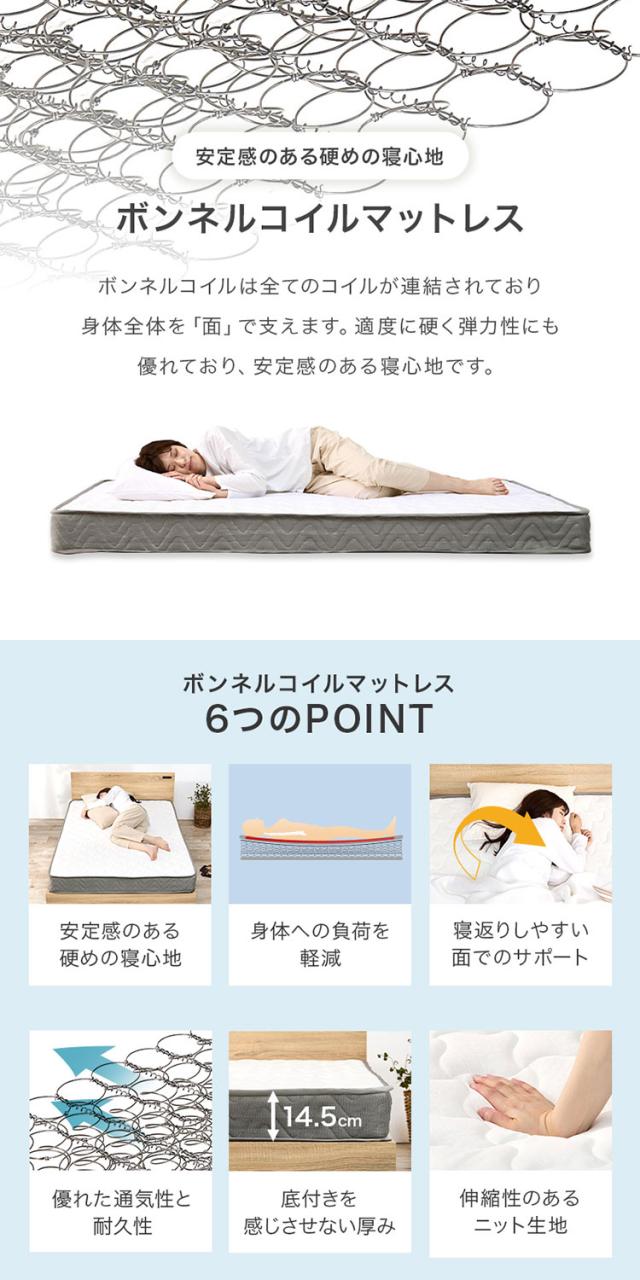 | シングル/ベッドフレーム +ボンネルコイルマットレス | シングル/ベッドフレーム +ポケットコイルマットレス |