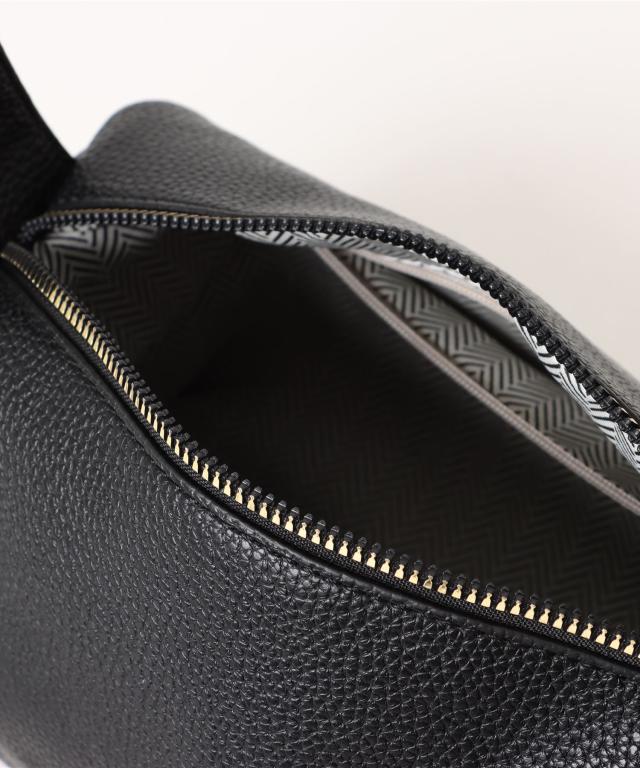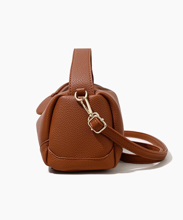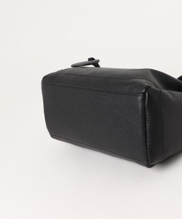 シュリンク加工を施したPUレザーを使用し、ふっくら空気を含んだようなスクエアフォルムに。
