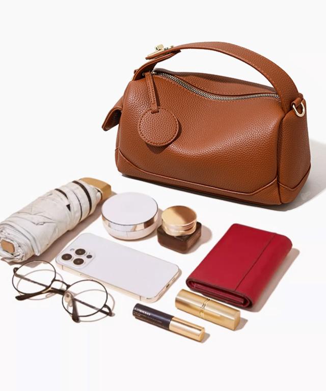 PUレザーライクボックス型ハンドバッグ/ショルダーバッグ。